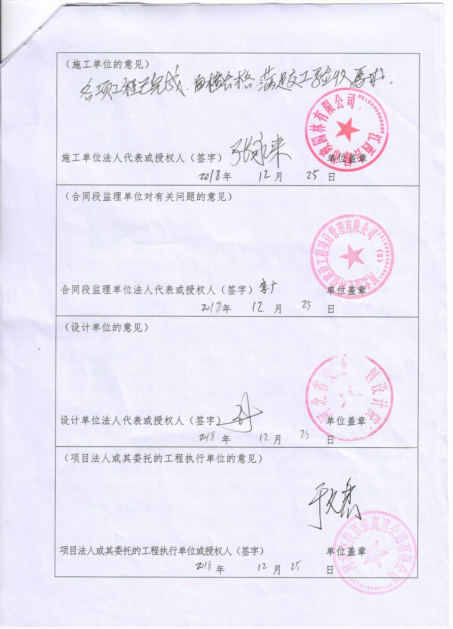 京張高速公路2018年沿線綠化提升工程竣工驗(yàn)收證書