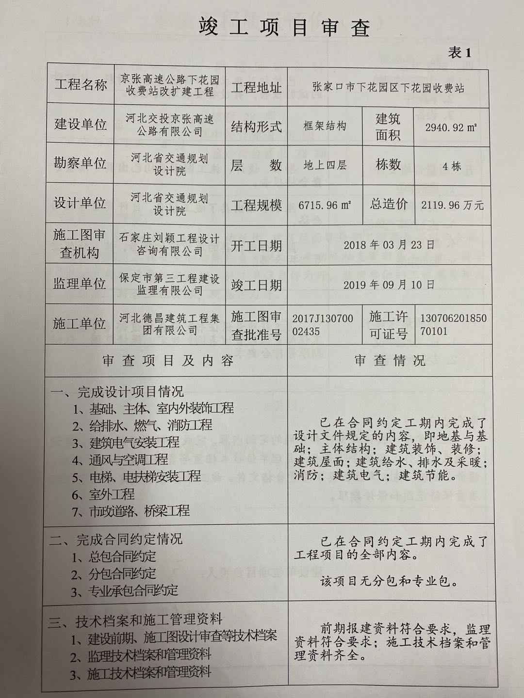 京張高速公路下花園收費(fèi)站改擴(kuò)建工程竣工驗(yàn)收報(bào)告